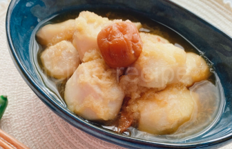 冷めた②の上に③をのせたら出来上がり。 煮終わる直前にヘタを取ったミニトマトを入れてひと煮立ちさせ、水溶き片栗粉でとろみをつける。
